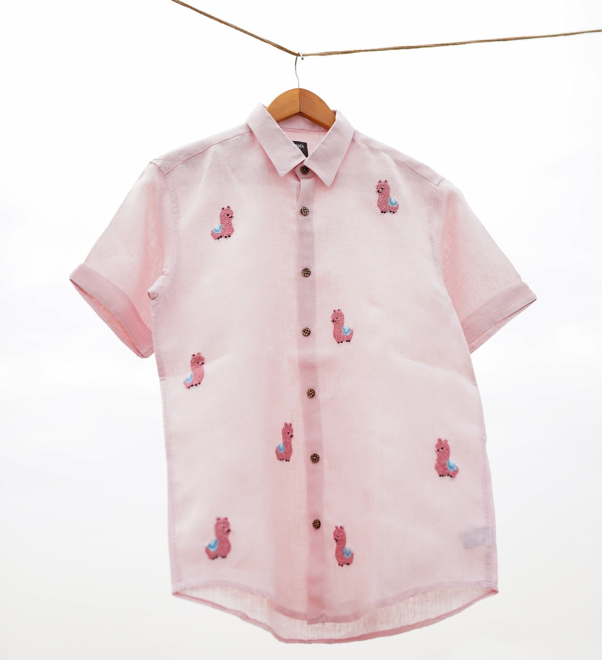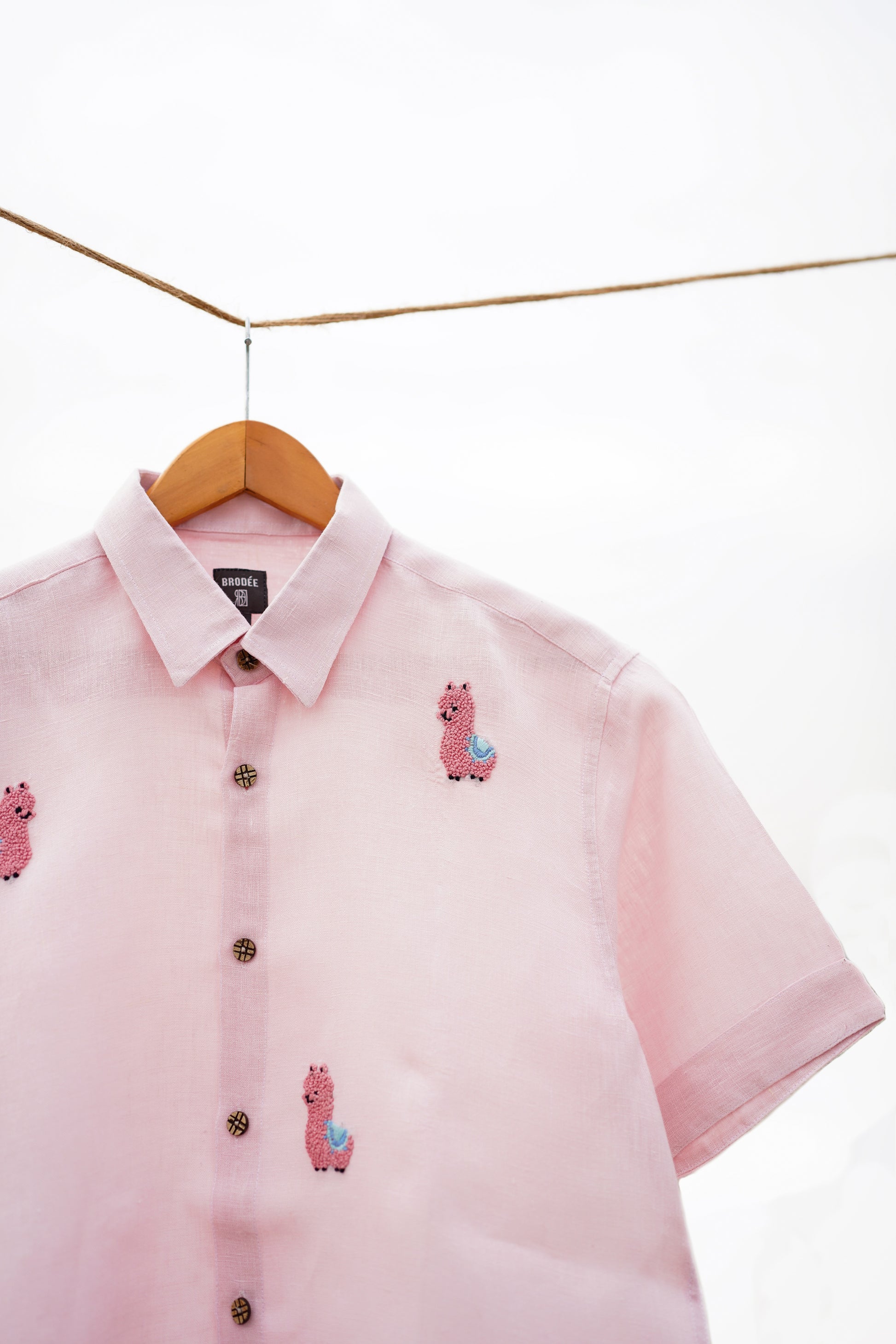 Prepare yourself for the alpacalypse. Detailed hand embroidered piece, with a breezy vibe and a delicate tint. The shirt fits perfectly with the summer rush.