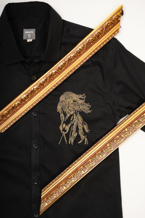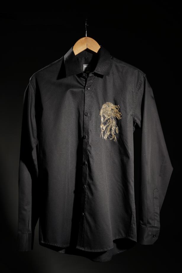 The horse is a majestic animal that embodies the spiritual power of independence, nobleness, endurance and heroism. An alluring hand work enhances the over all appearance of the shirt.
