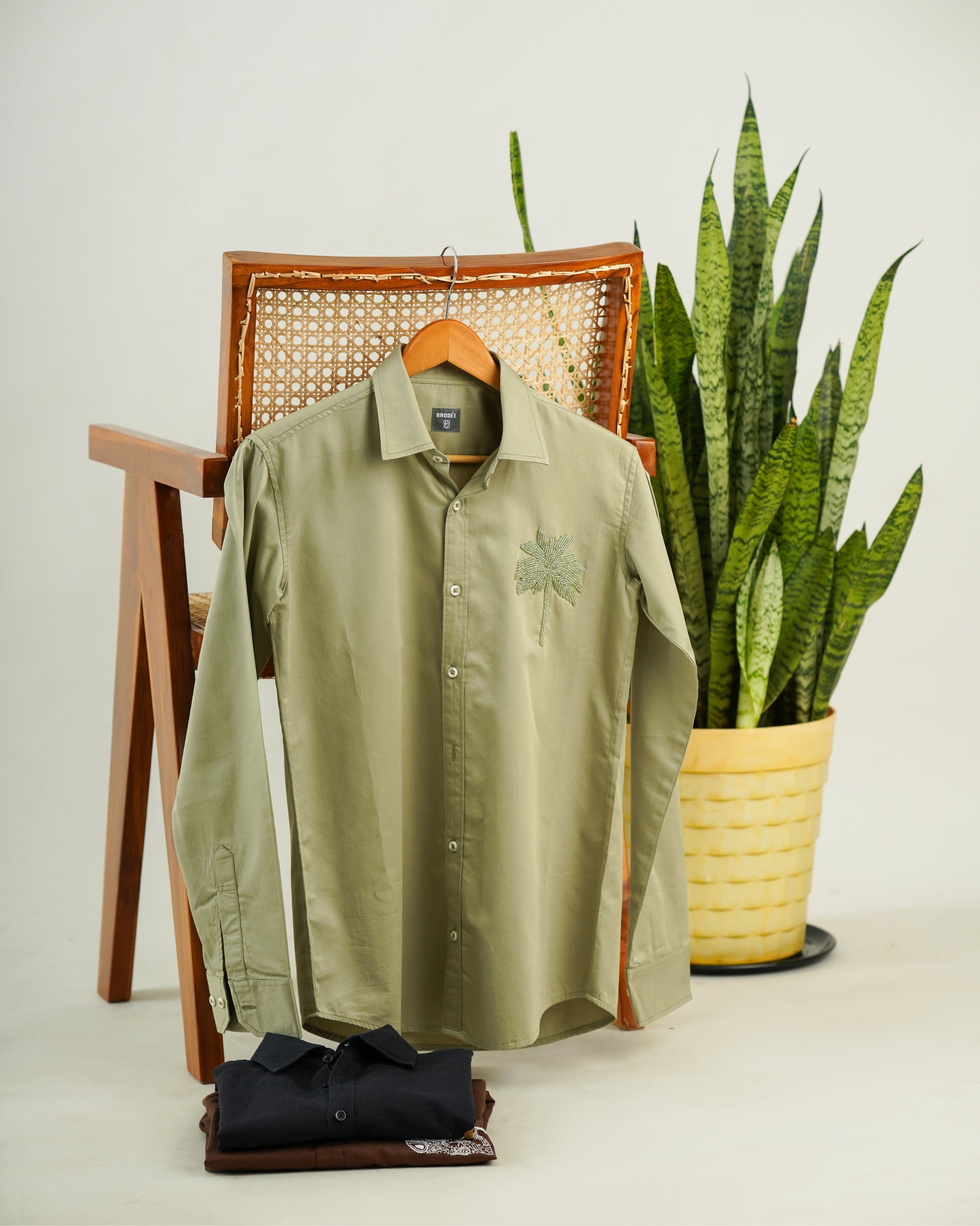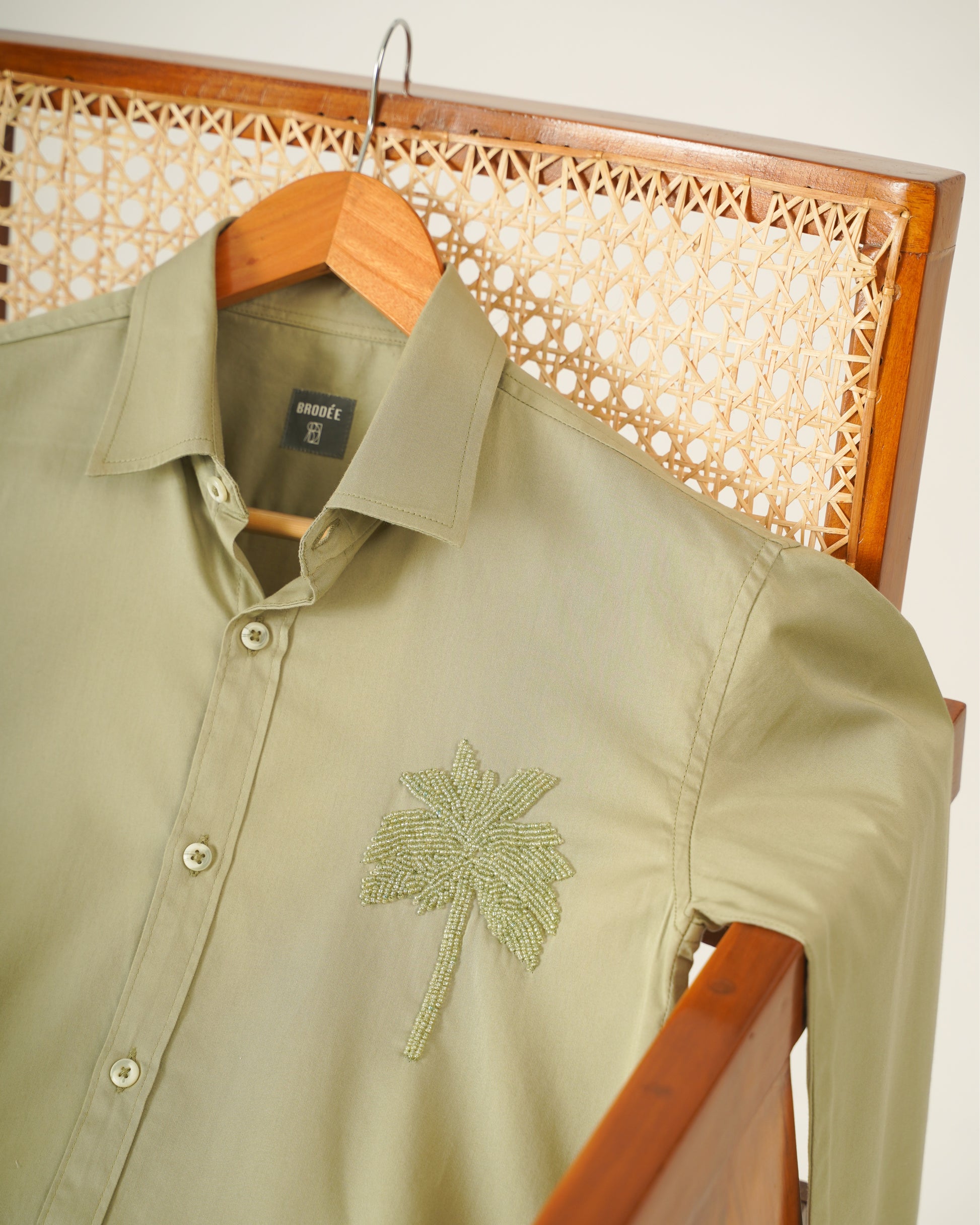 Brodée shirt is made of 100% Giza Fine Cotton. As the brand name defines itself, the astonishing hand embroidered palm motif on the Brodée shirt gives an appealing twist to the menswear smock.