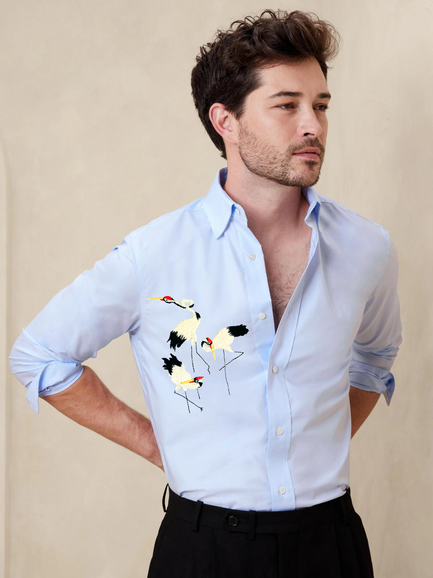 RED-CROWNED CRANE BRODÉE SHIRT